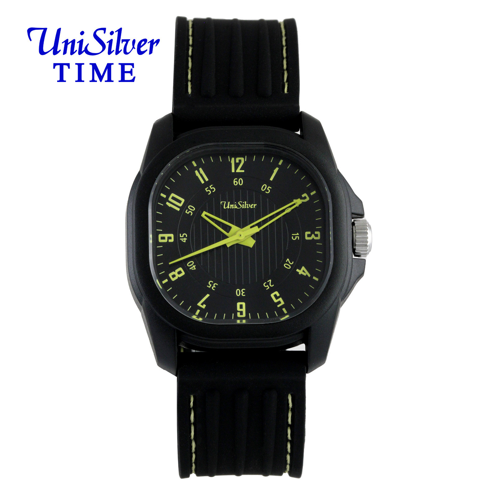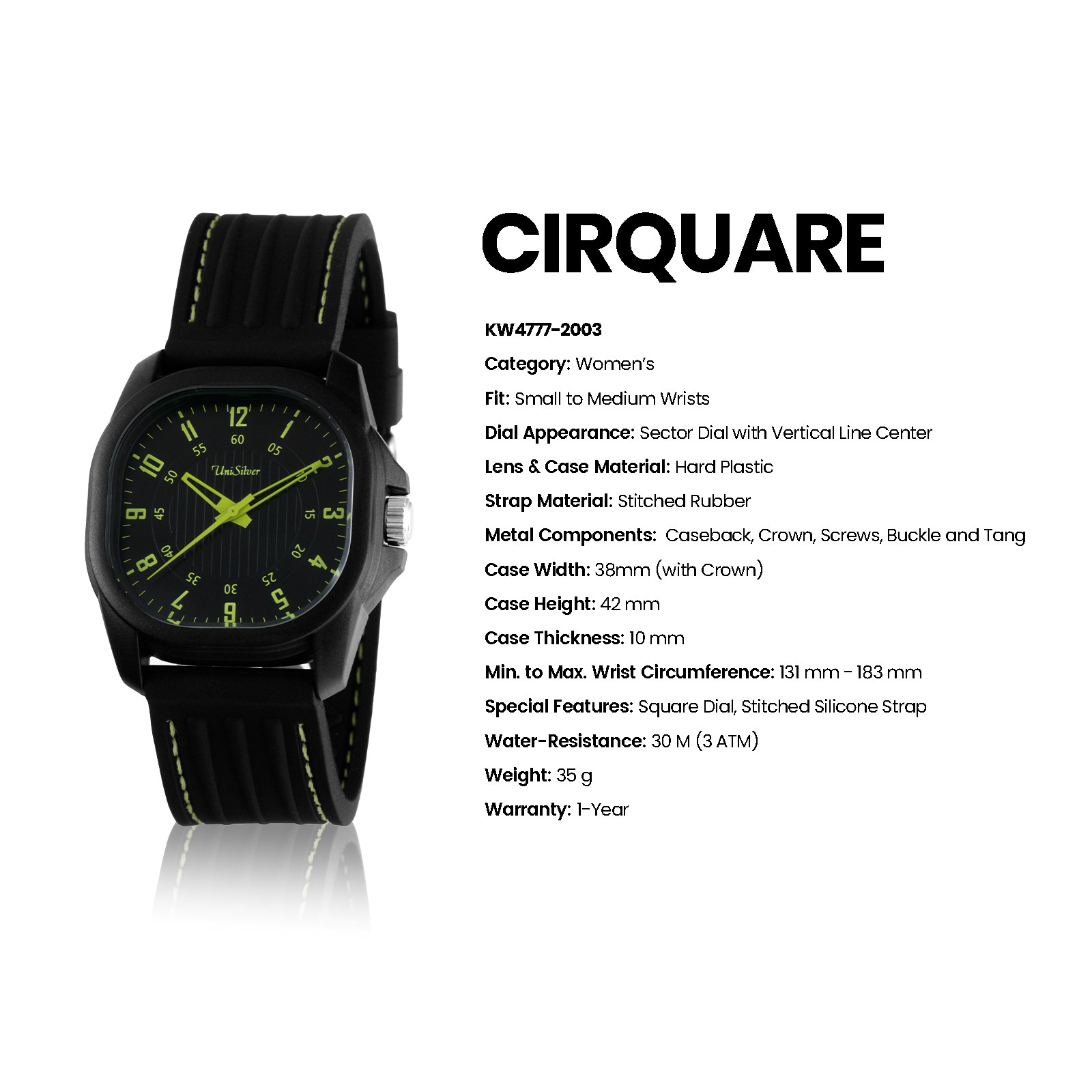 CIRQUARE Women's Analog Square/ Rectangle Dial Green/Black Stitched Rubber KW4777-2003 Watch With Free