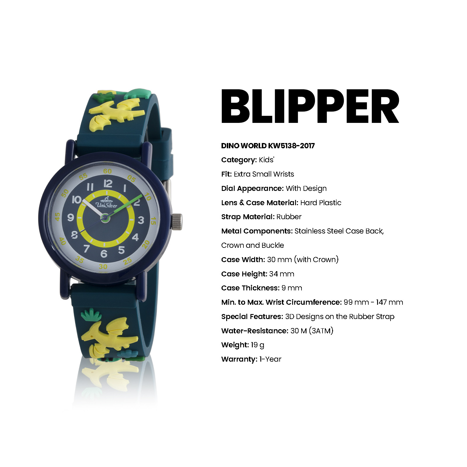 BLIPPER DINO WORLD Kids' Analog Multi-Colored/Blue-Green Rubber KW5138-2017 Watch With Free