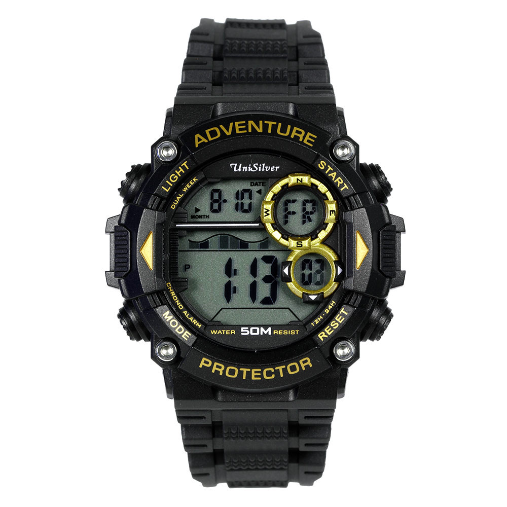 Be armed for fashionably casual days ahead with the Fortillon digital watch by UniSilver TIME. Strong edges in the details make this a formidable watch for guys on the go. Long-wearing and made of durable and hypoallergenic, this is a watch you can't leave home without!