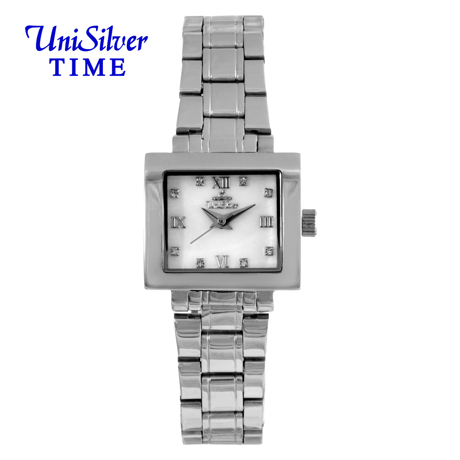 Radiate sophistication with the Delaine Ador timepiece from UniSilver TIME. This gold-plated accessory gleams with its sleek bracelet. The focal point - the off-white dial - sparkles marvelously with crystals for hour indices. The rectangular-shaped dial is the perfect statement for this timeless watch. Watch Care (Stainless Steel Case & Bracelet · Sapphire Crystal) a.) Made for everyday moments. Wipe with a soft, dry cloth to keep it looking its best. b.) Avoid contact with chemicals, perfumes, and extreme heat. c.) Sapphire crystal resists scratches, but avoids hard impacts. d.) Follow the indicated water-resistance rating and keep the crown secured. e.) Store in a dry place when not in use. Periodic servicing helps maintain optimal performance. Over time, fine marks on stainless steel reflect a watch well worn — and well lived.