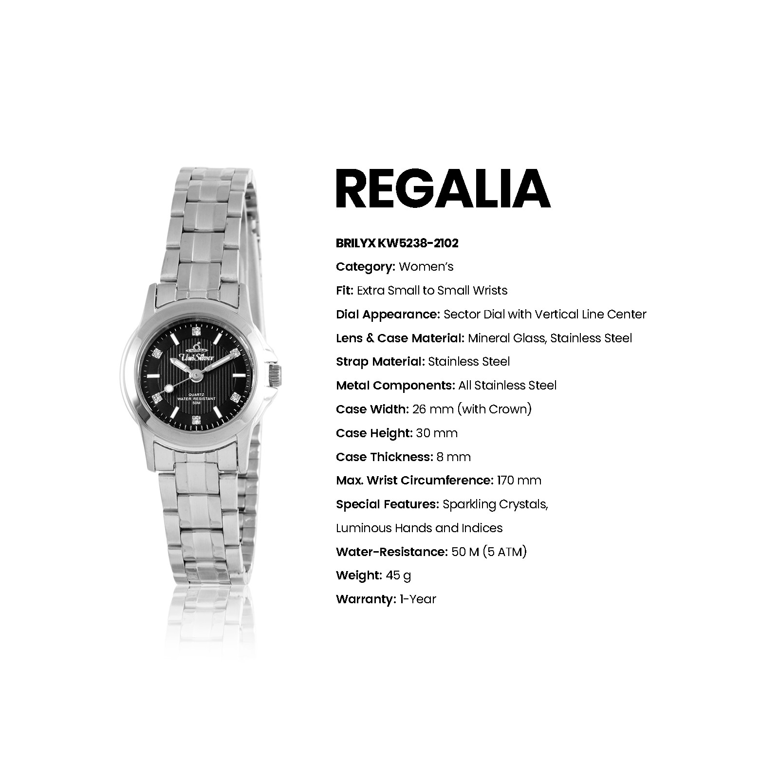 REGALIA BRILYX Women's Analog Black/Silver Stainless Steel KW5238-2102 Watch