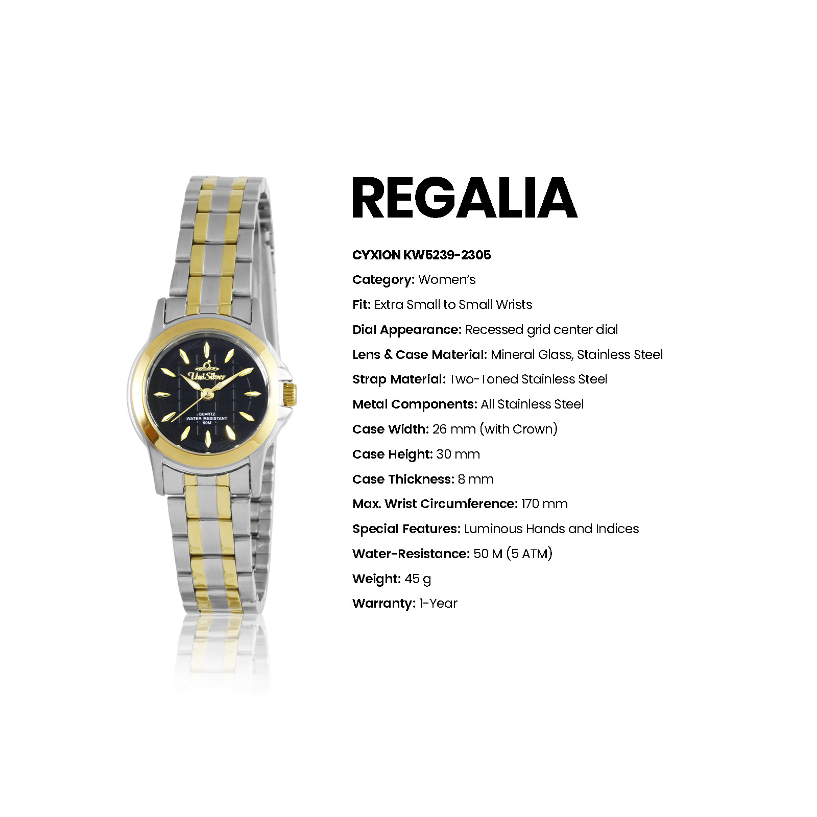 REGALIA CYXION Women's Analog Black/Two-Toned Stainless Steel KW5239-2305 Watch