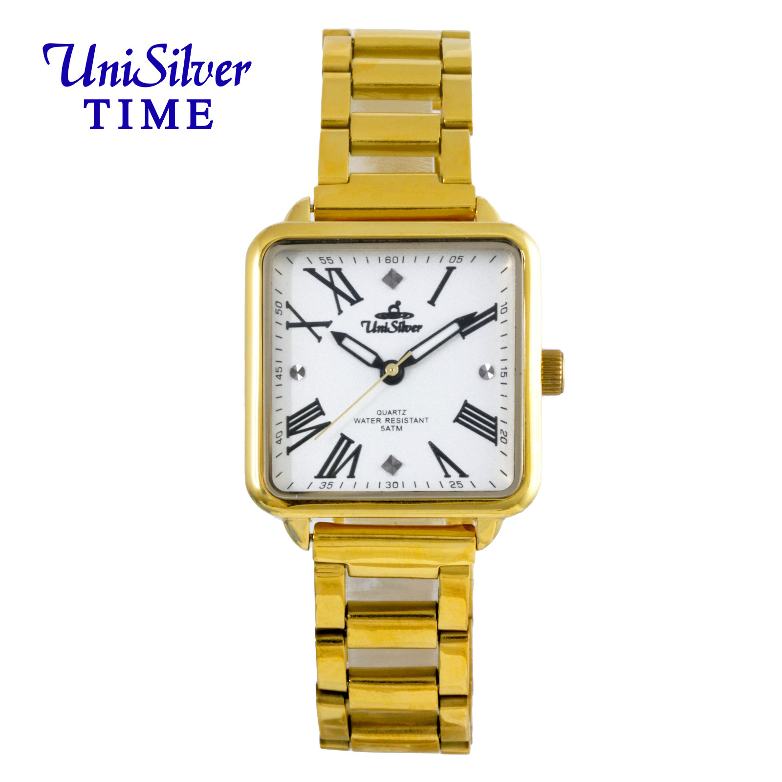 VERIQ CALDRE Women's Extra Small Analog Square Dial, Chain Type Links Bracelet Silver-White/Gold Stainless Steel (Chain Link) KW5304-1204 Watch