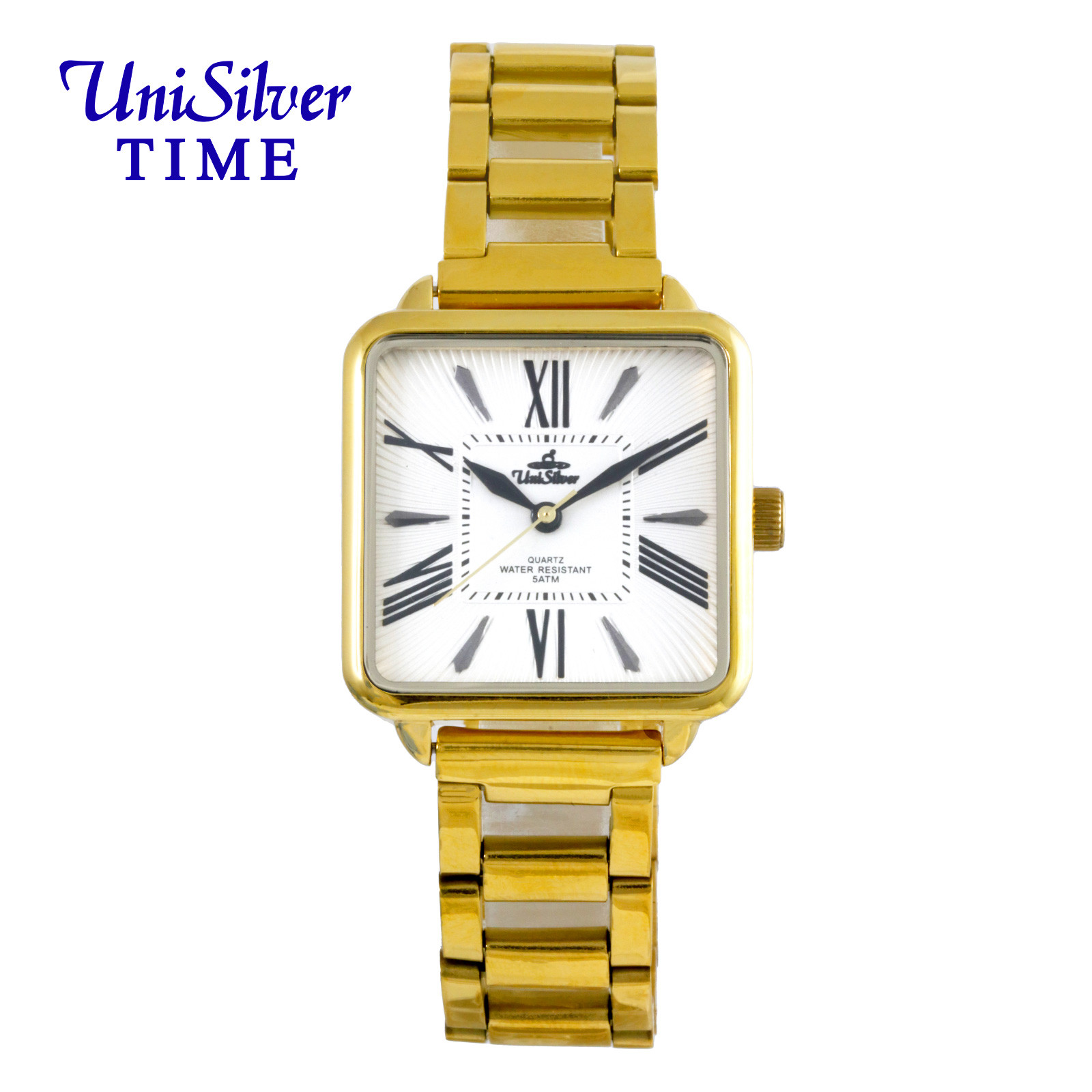 VERIQ ELION Women's Extra Small Analog Square Dial, Chain Type Links Bracelet Silver-White/Gold Stainless Steel (Chain Link) KW5308-1204 Watch