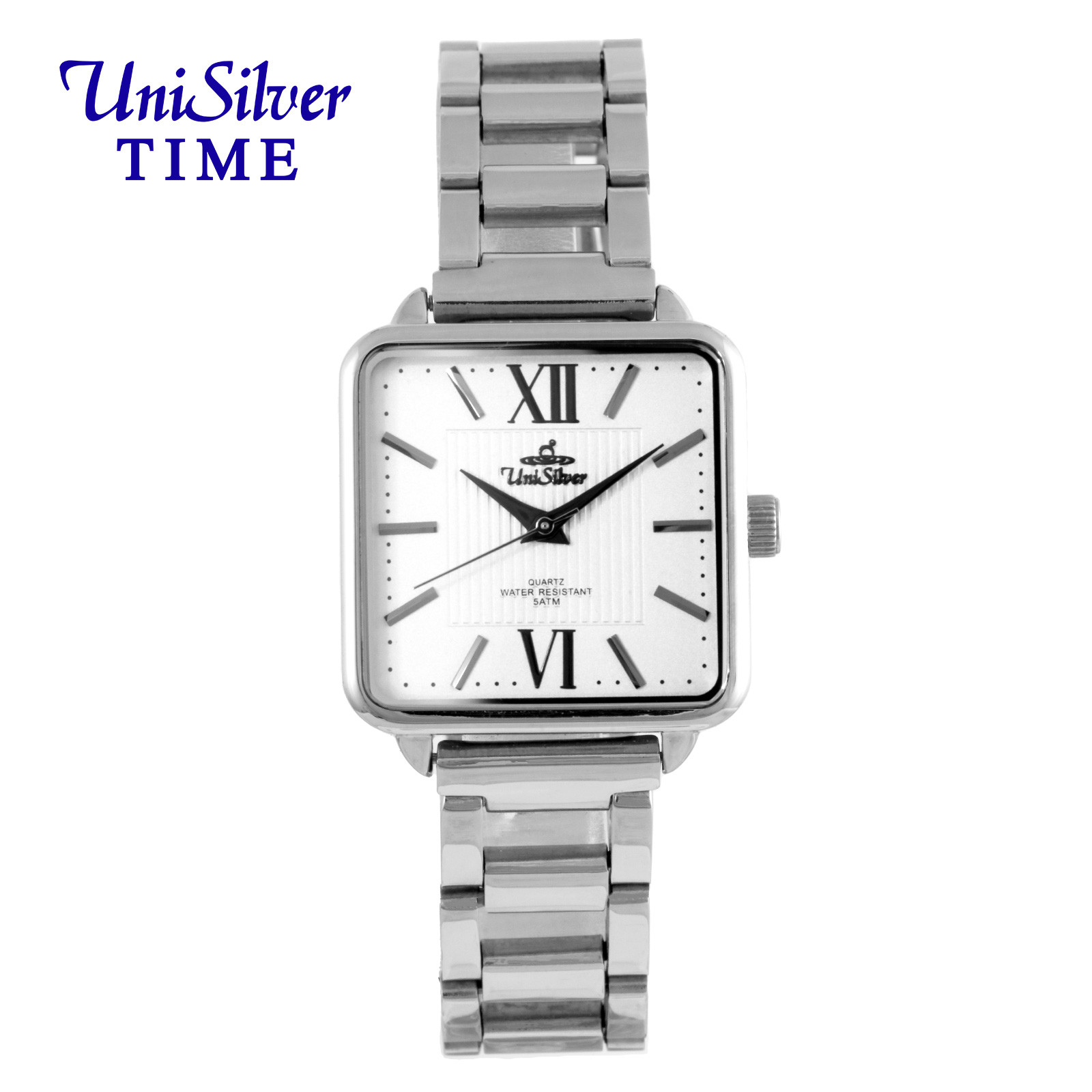VERIQ VECTA Women's Extra Small Analog Square Dial, Chain Type Links Bracelet Silver-White/Silver Stainless Steel (Chain Link) KW5307-1101 Watch