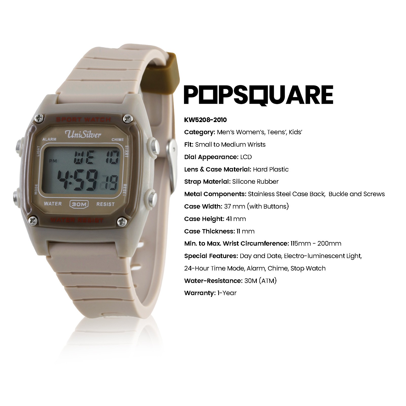 The PopSquare digital watch by UniSilver TIME is a modern, playful watch with a bold square design, made for everyday casual wear. Its sleek and vibrant look makes it easy to style with any outfit, whether you’re heading out for fun with friends, enjoying weekend adventures, or just adding a pop of personality to your day. Durable and comfortable, it’s designed to be a reliable companion for all your daily moments.