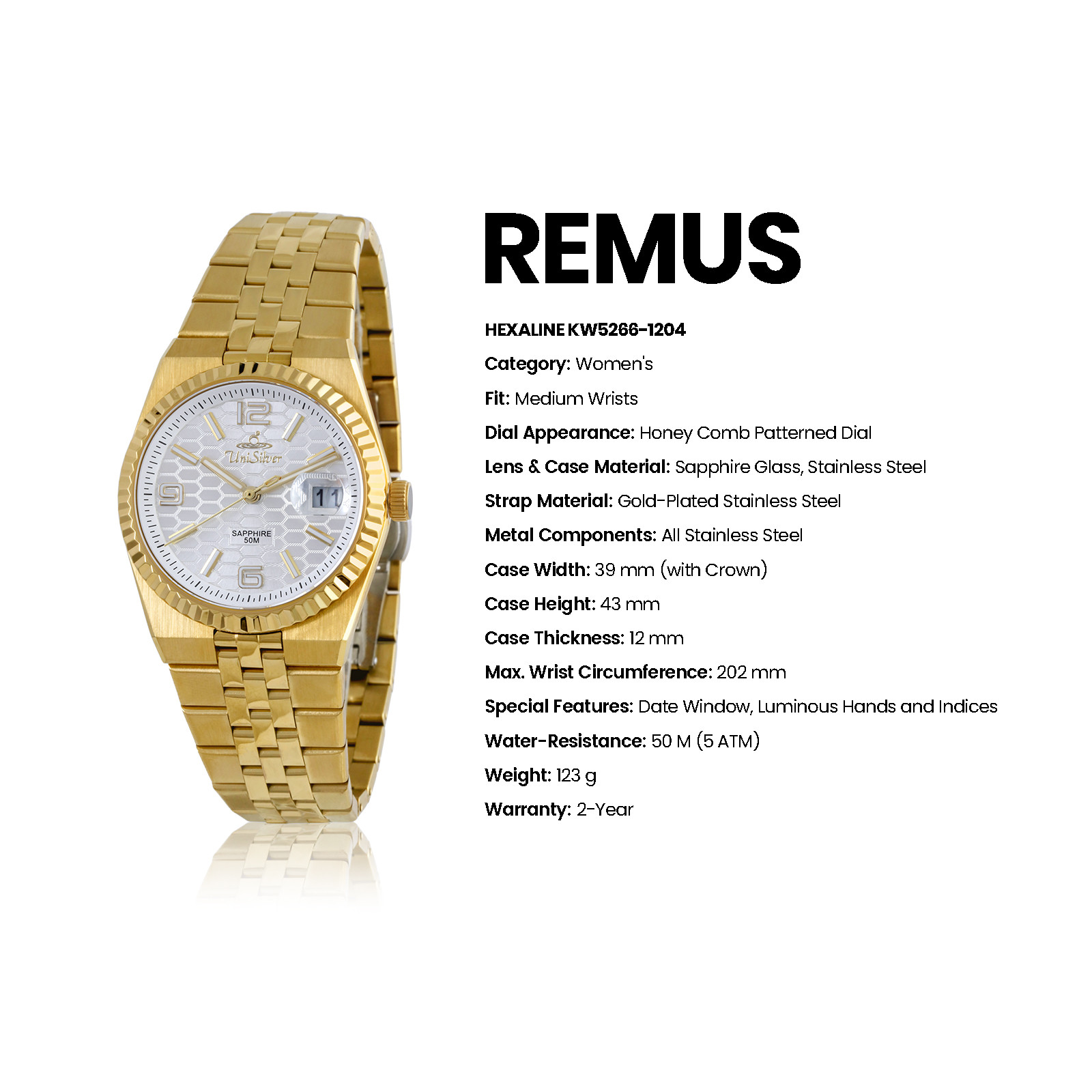 Discover the Remus Hexaline a sophisticated piece that brings together contemporary design and dependable performance. Its minimalist analog display is enhanced by a textured honeycomb dial, creating a subtle yet distinctive look.