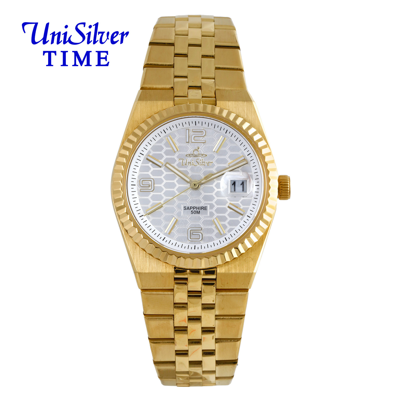 Equipped with precise Japan movement, it offers consistent and reliable timekeeping for everyday use. The stainless steel construction and scratch-resistant sapphire glass provide durability while maintaining a refined finish.