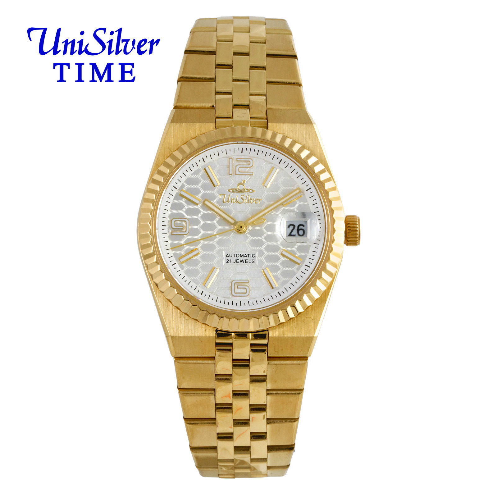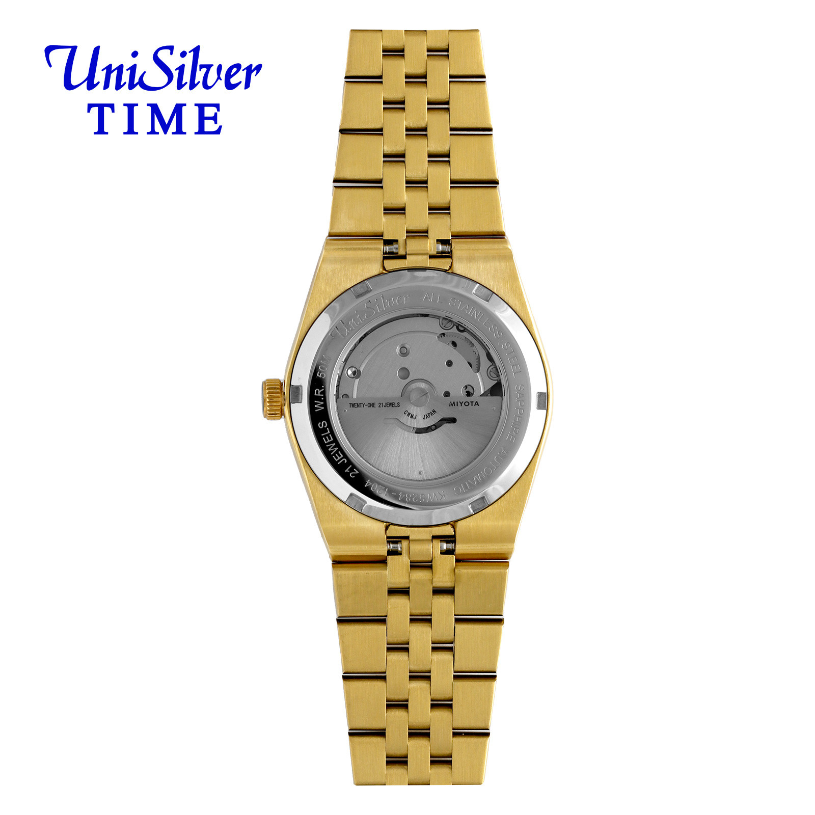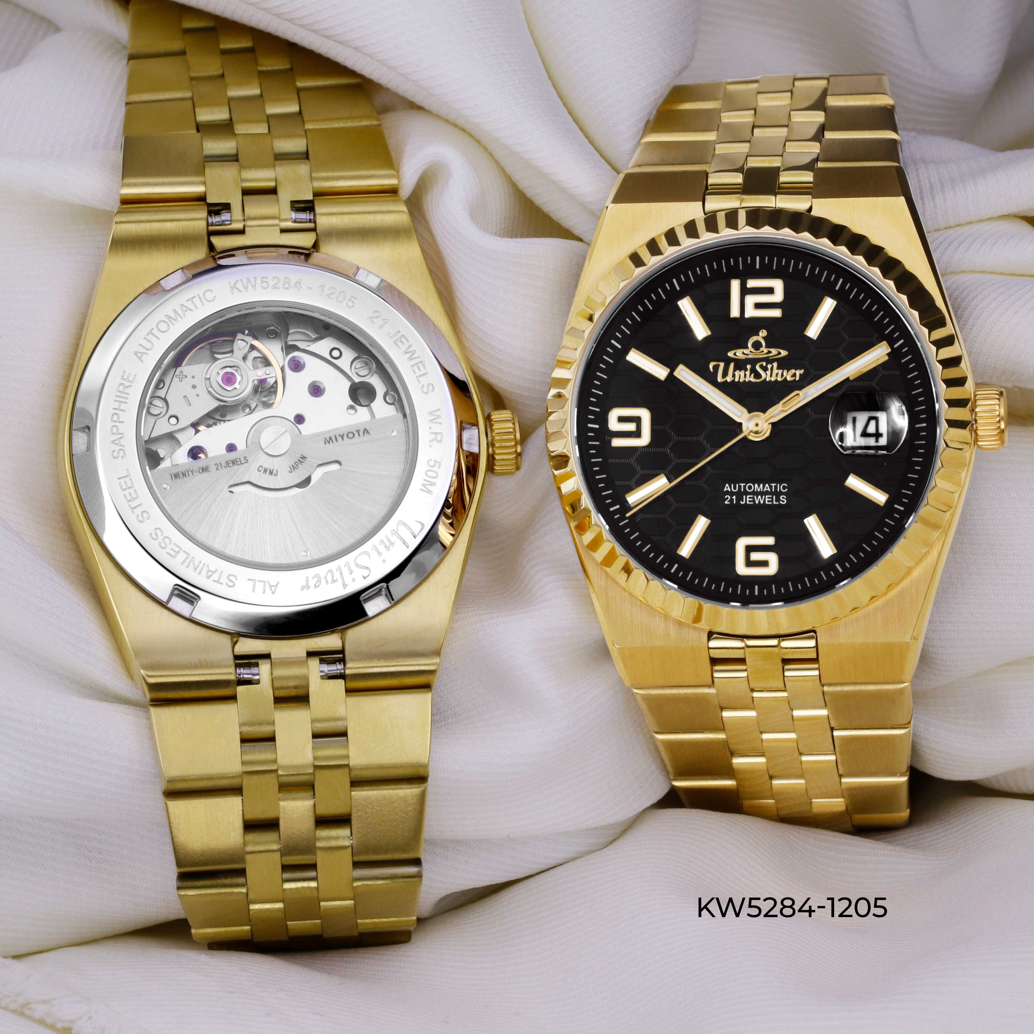 Powered by a self-winding 21-jewel movement and showcased through a transparent case back, it delivers reliable, battery-free performance. Built with durable stainless steel and scratch-resistant sapphire glass, it’s made for everyday wear.