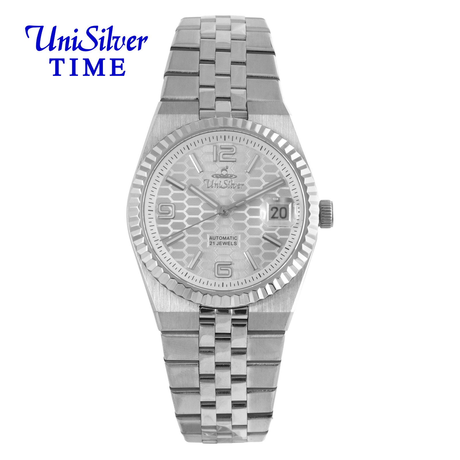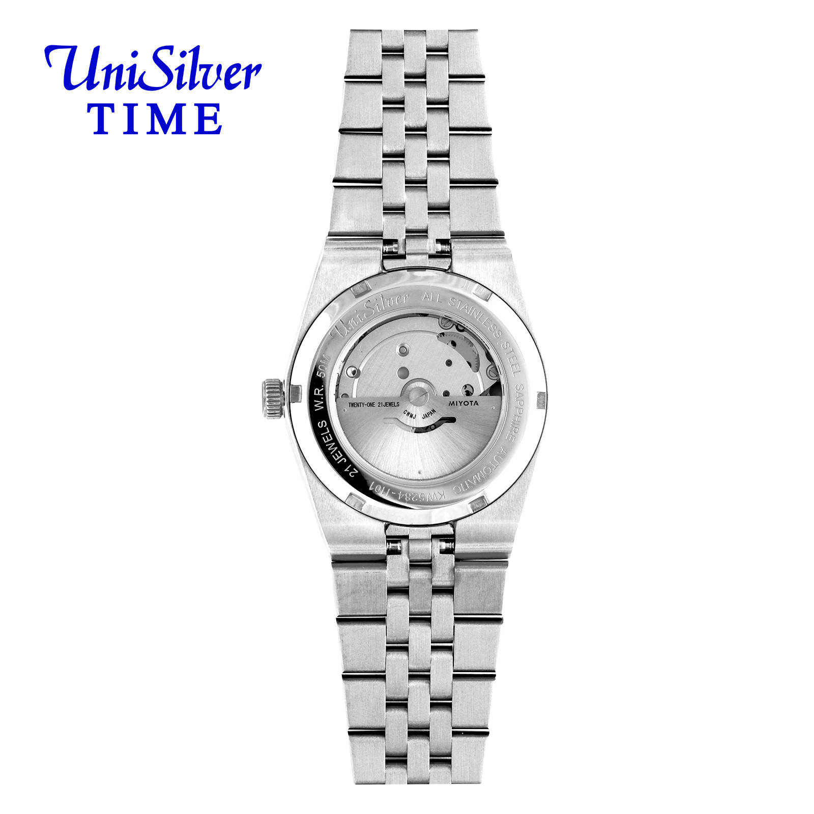 Powered by a self-winding 21-jewel movement and showcased through a transparent case back, it delivers reliable, battery-free performance. Built with durable stainless steel and scratch-resistant sapphire glass, it’s made for everyday wear.