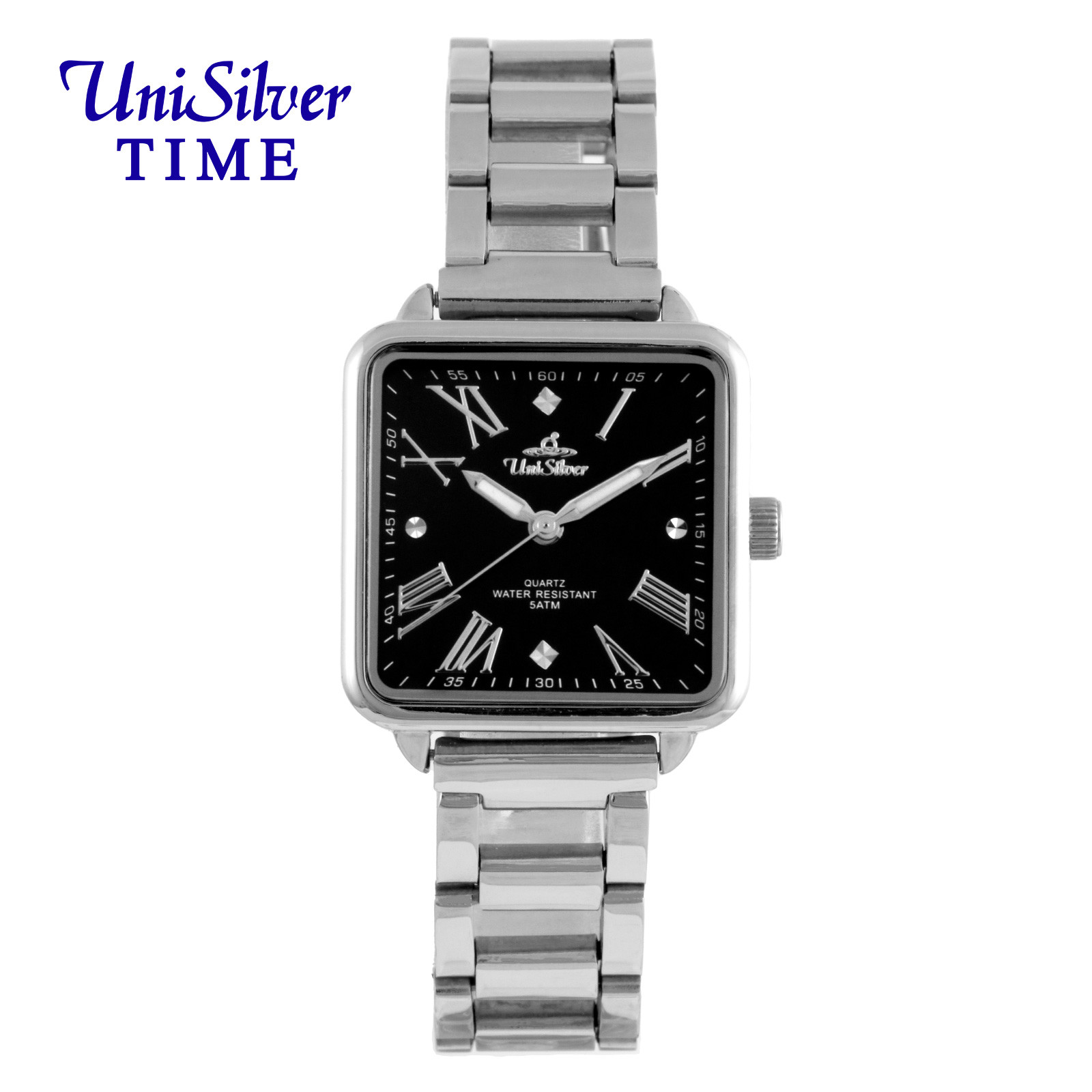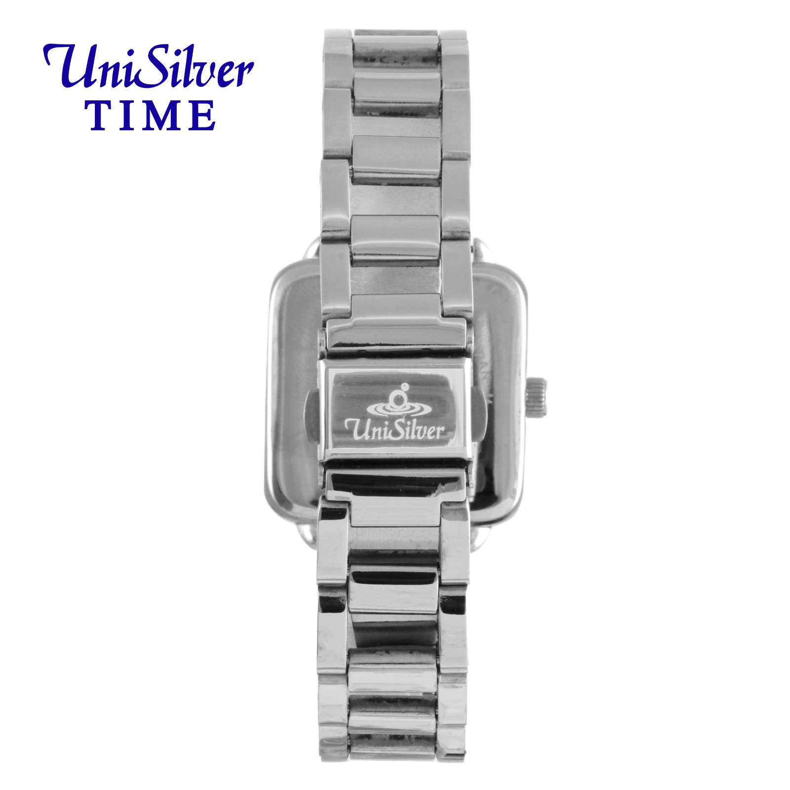 CALDRE Women's Extra Small Analog Square Dial, Chain Type Links Bracelet Black/Silver Stainless Steel (Chain Link) KW5304-1102 Watch