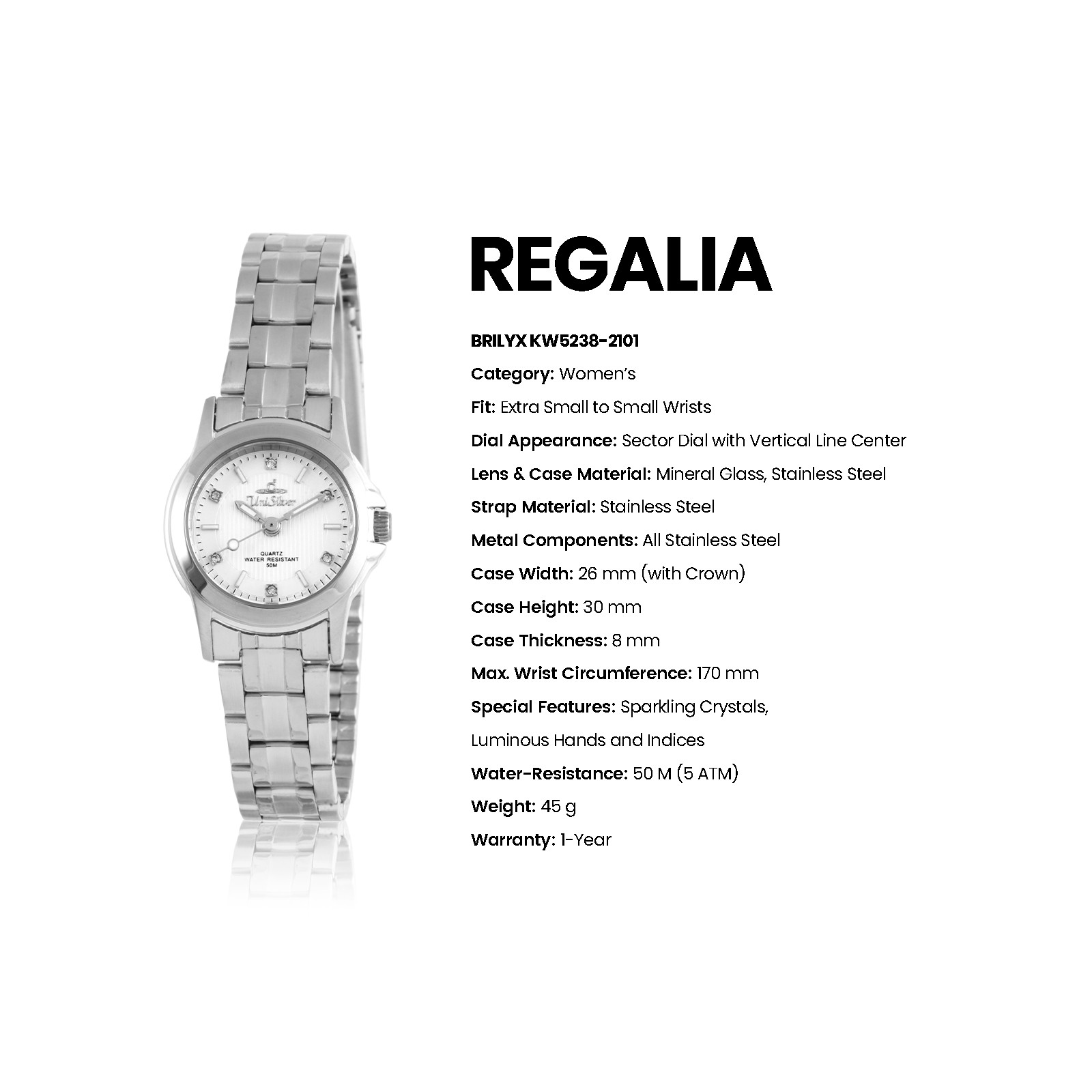 REGALIA BRILYX Women's Analog White/Silver Stainless Steel KW5238-2101 Watch