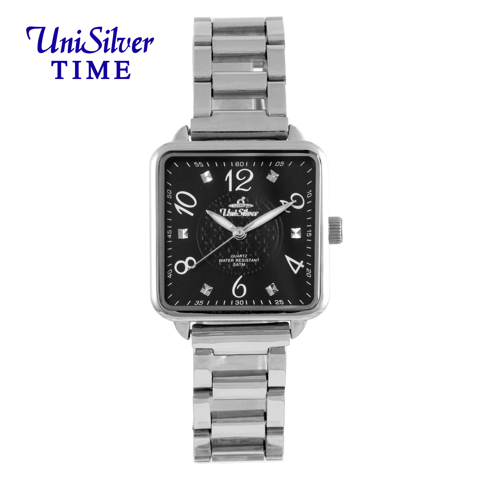 VERIQ FLOREN Women's Extra Small Analog Square Dial, Chain Type Links Bracelet Black/Silver Stainless Steel (Chain Link) KW5306-1102 Watch