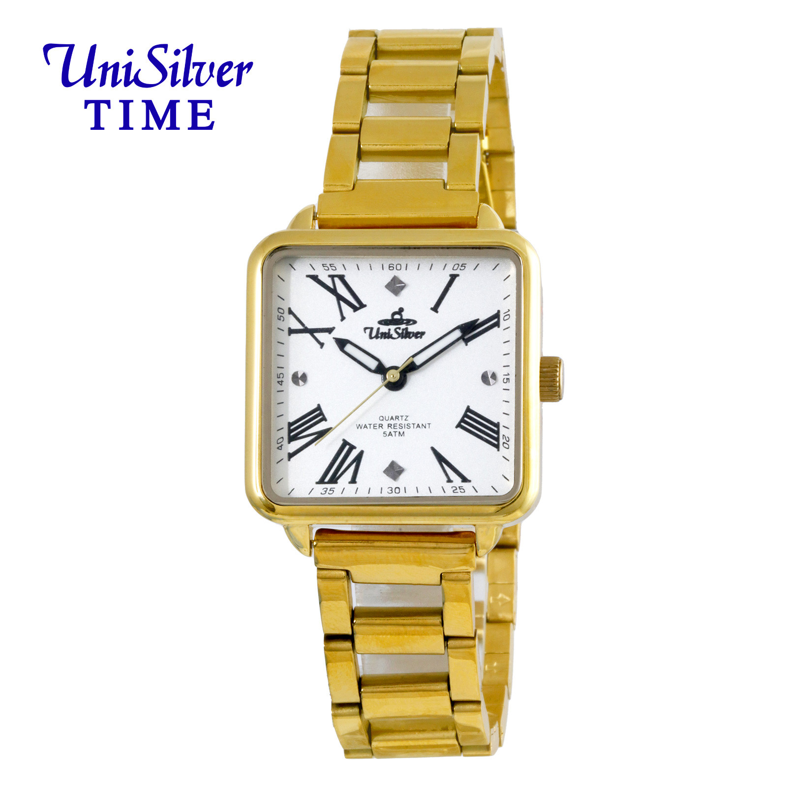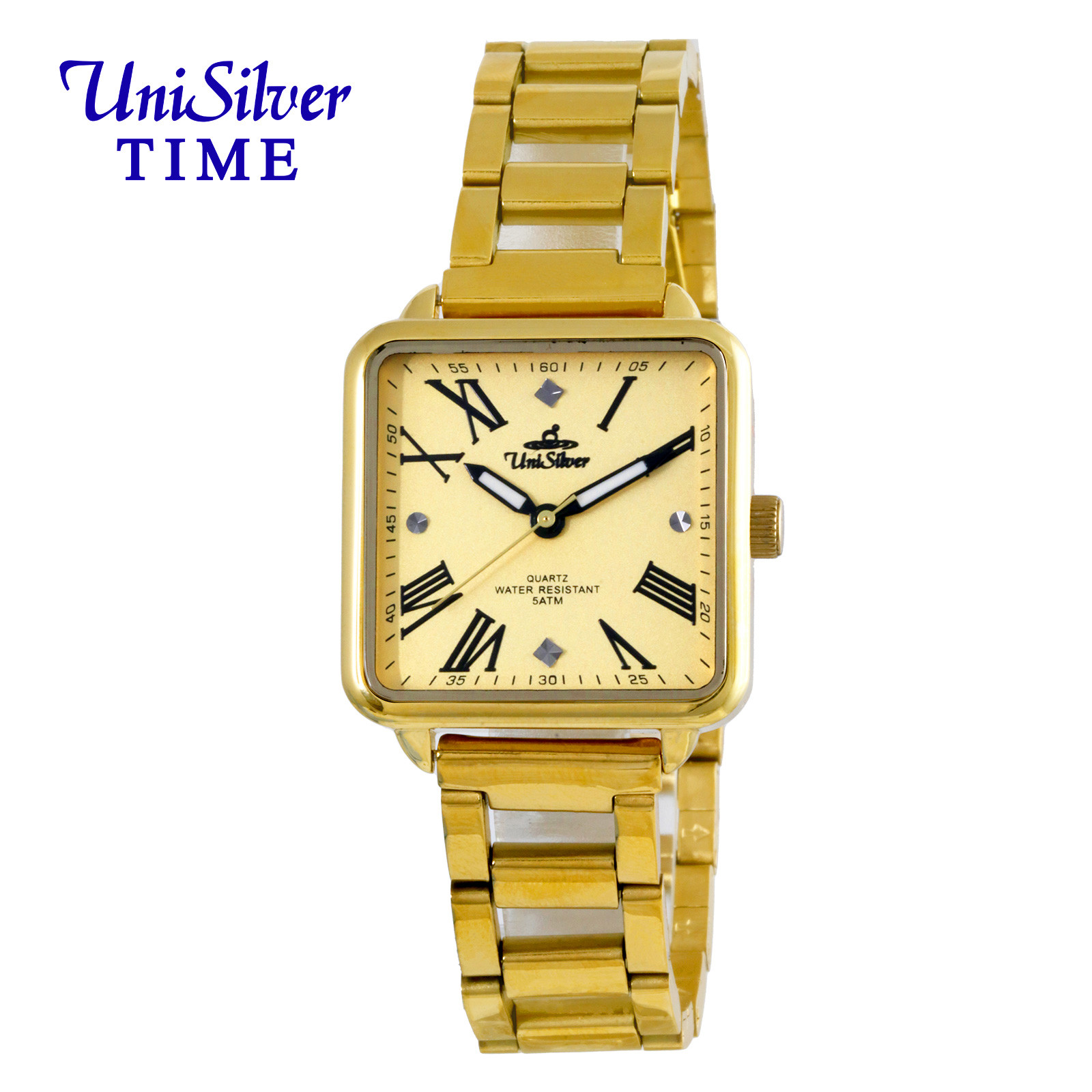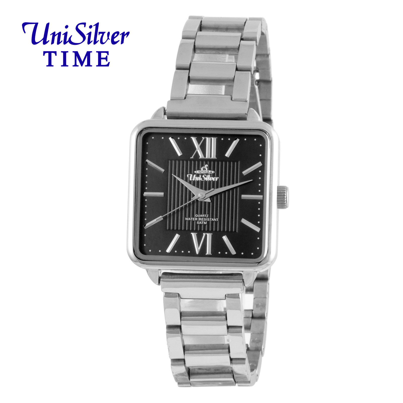 VERIQ VECTA Women's Extra Small Analog Square Dial, Chain Type Links Bracelet Black/Silver Stainless Steel (Chain Link) KW5307-1102 Watch