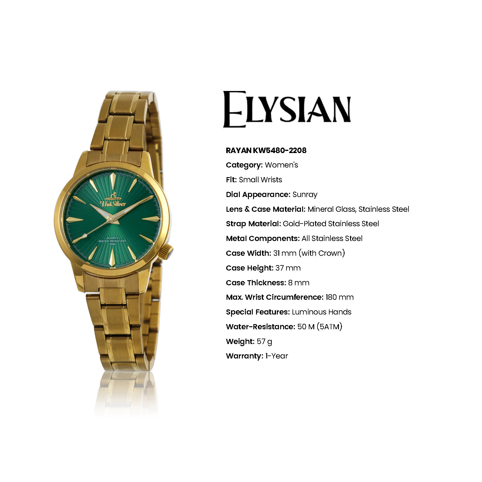 The Elysian Rayan Women’s Watch is a celebration of timeless elegance and graceful design. Crafted with meticulous attention to detail, it embodies sophistication in every element – from its delicate design to its refined finish. This exquisite timepiece transcends fleeting trends, offering a classic charm that enhances any ensemble. More than just a watch, it is a statement of poise and confidence for the woman who appreciates true luxury.