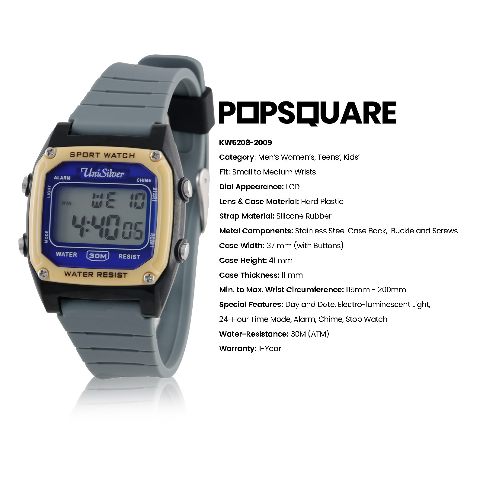 The PopSquare digital watch by UniSilver TIME is a modern, playful watch with a bold square design, made for everyday casual wear. Its sleek and vibrant look makes it easy to style with any outfit, whether you’re heading out for fun with friends, enjoying weekend adventures, or just adding a pop of personality to your day. Durable and comfortable, it’s designed to be a reliable companion for all your daily moments.