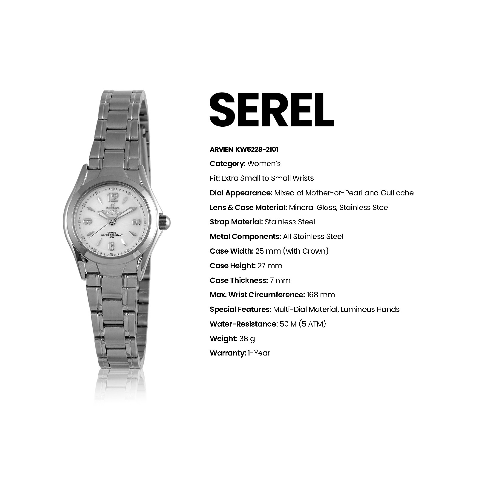 With its luminous hands, mother-of-pearl dial and refined detailing, Arvien brings quiet sophistication to every moment. Powered by reliable Japan movement and crafted in stainless steel with 50M water resistance, it’s designed to shine effortlessly from day to night.